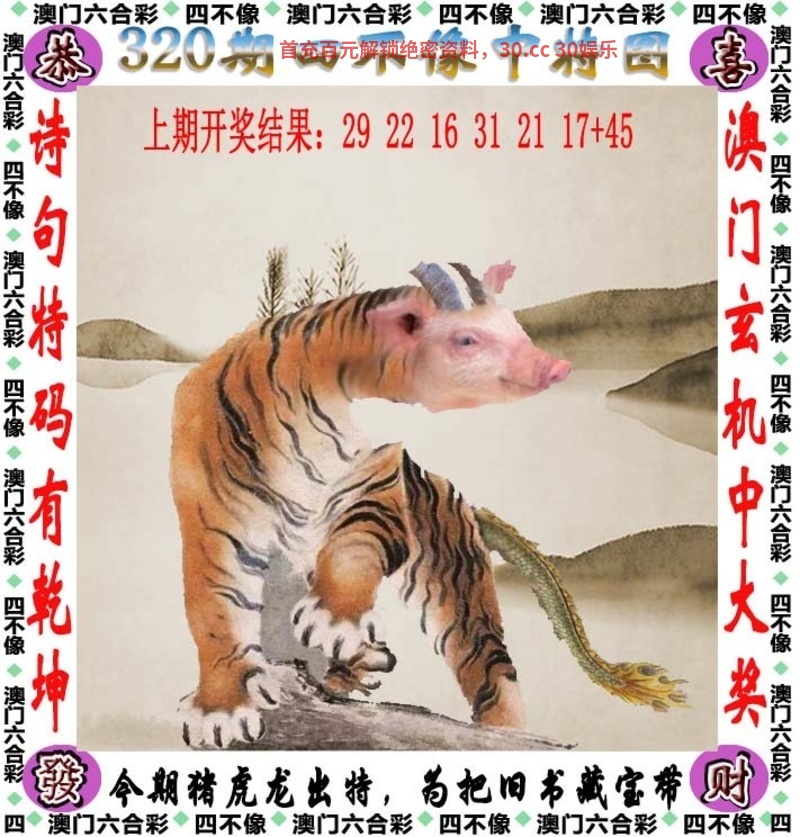 320期:今期猪虎龙出特,为把旧书藏宝带【开:虎28】 ①杀鸡猴兔(09.21.33.45.10.22.34.46.03.15.27.39) ②解特肖猪虎龙羊蛇 ③小数+合双 |
